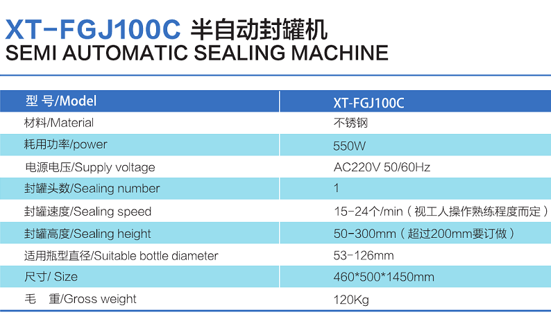 適用于各種馬口鐵罐、鋁合金罐、 紙罐等各種圓形規(guī)格易拉罐的封口,操作簡單易學(xué),是食品、飲料、